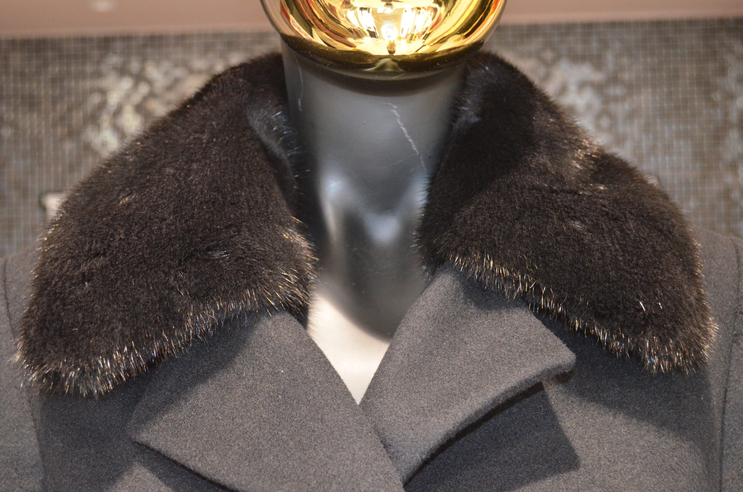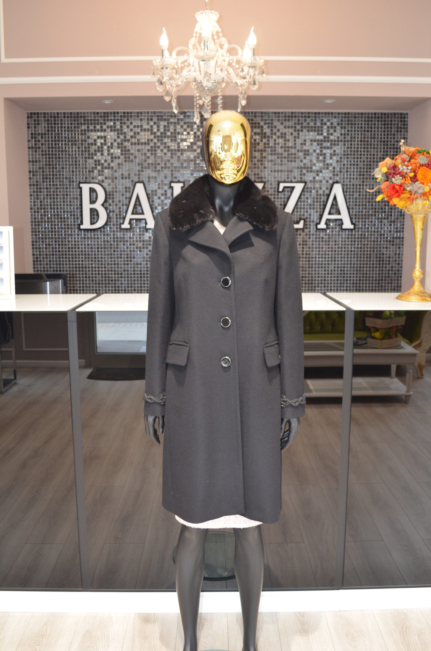 Palton negru cu aplicatii la maneca si blanita naturala