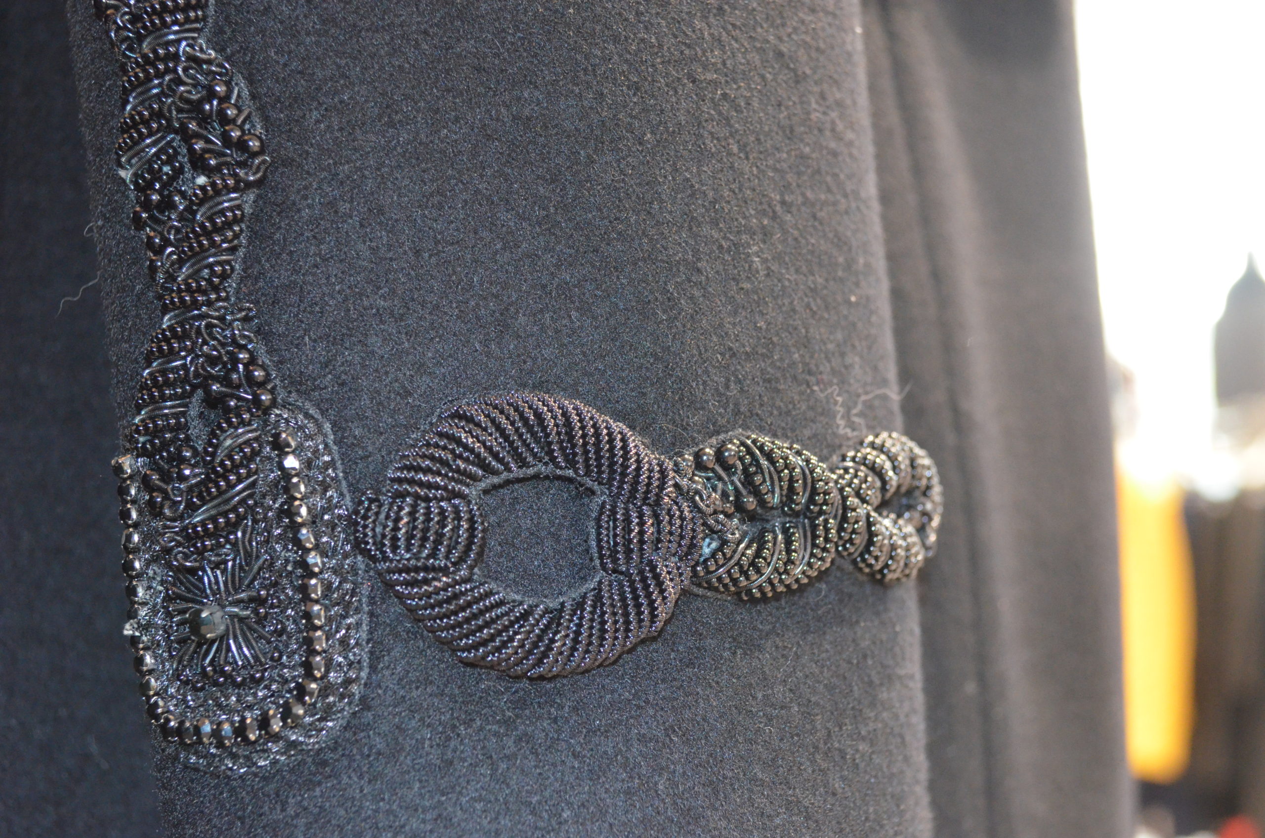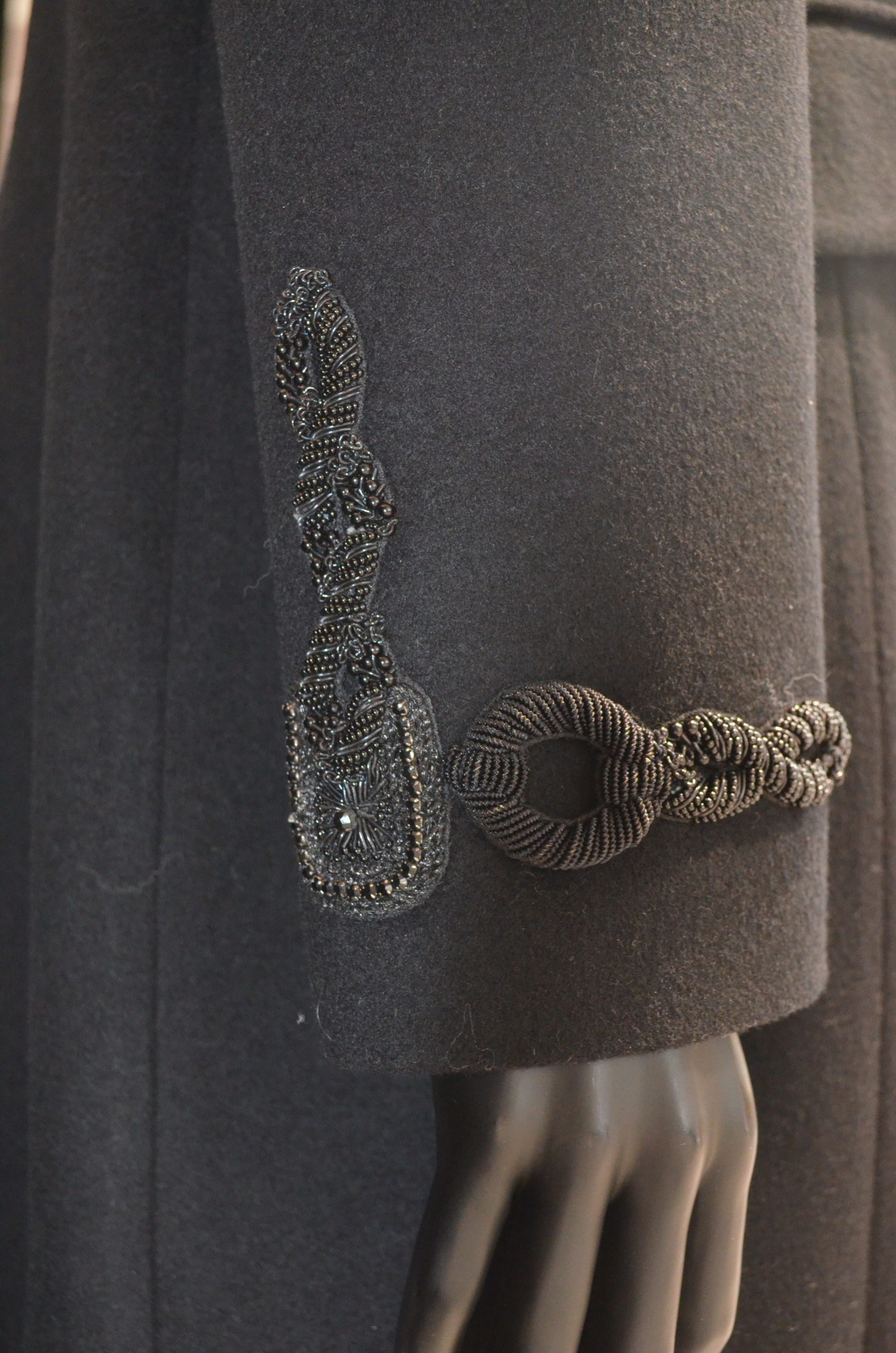 Cantitate Palton negru cu aplicatii la maneca si blanita naturala